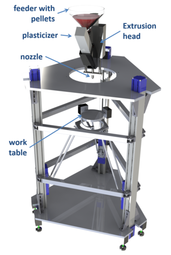 RichRap sostiene che bastano solo un motore passo-passo, una vite che trasposta il materiale in direzione dell'ugello (si può utilizzare una punta da trapano) un cuscinetto ed alcune viti M3 o M4.