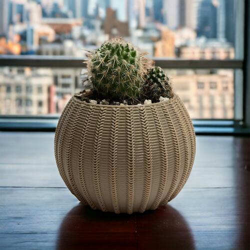 CactuCup non è solo un vasetto, è una vera e propria espressione artistica nel mondo della stampa 3D. La sua caratteristica principale è il sorprendente pattern curvilineo, frutto di un design unico che si avvale della gravità per creare forme geometriche irripetibili. Ogni stampa di CactuCup è un'avventura: non troverai mai due vasi uguali, rendendo ogni pezzo una rarità nel suo genere.