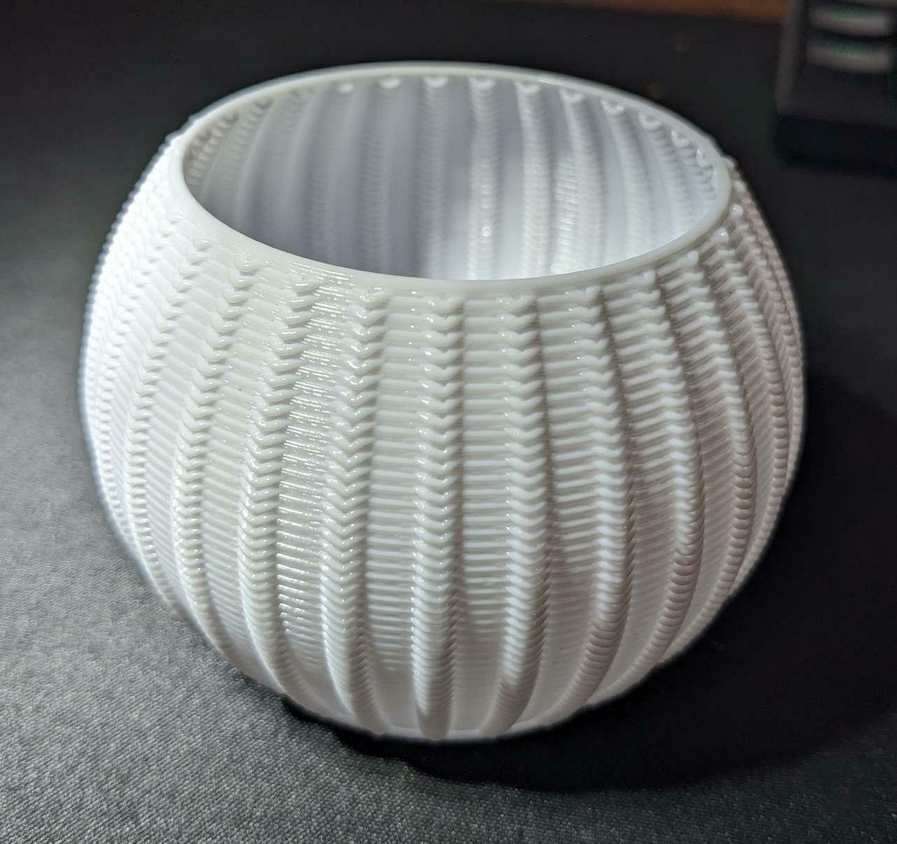 Una volta acquistato il modello 3D, potrai stamparlo tutte le voltre che vorrai! Sperimenta parametri di stampa diversi e scopri l'unicità di stampare lo speciale pattern curvilineo con materiali diversi.