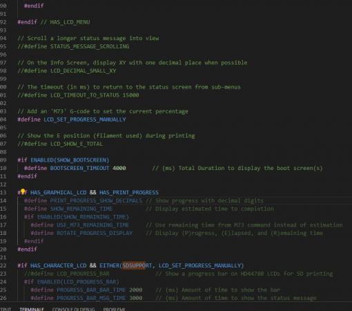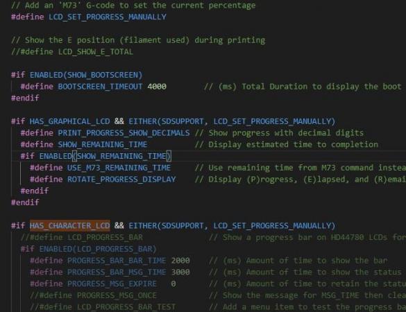 vuol dire che non considera il tuo LCD come grafico, perché per attivare le righe sottostanti in quella condizione di IF devono essere vere entrambe le condizioni, e cioè che sia un LCD grafico e sia decommentato lcd_set_progress_manually. Se l'ultimo lo hai decommentato e non si attivano vuol dire che il tuo pannello LCD non lo considera grafico ma a caratteri.
