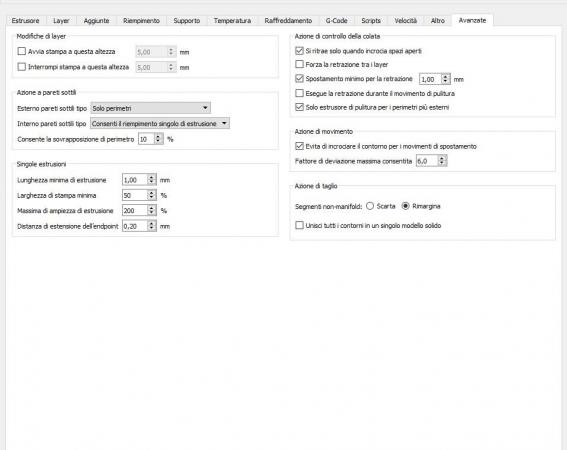 Basilietto Inviato 4 Maggio 2020 Autore Inviato 4 Maggio 2020 2 ore fa, Whitedavil dice: Nell'ultima scheda in alto a destra hai varie opzioni tra qui la ritrazione tra i layer. Se non la abiliti, tra un layer e l'altro se deve spostare l'ugello non facendo la ritrazione non fa il Z-hop Nell'ultima scheda ho queste impostazioni... tu quale dici? Cita