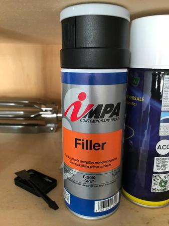 Be' quell'IMPA comincia a essere costoso, sui 13e. A quel punto potreste anche guardare le cose per modellismo che sono probabilmente piu' fini e di varie carature. Che io sappia il migliore e' il Mr Surfacer, io uso il Gray ad aerografo ed e' carteggiabile (c'e' in 3 pesature) ed e' ottimo per evidenziare i difetti. A spray in bomboletta molti usano il Tamya.