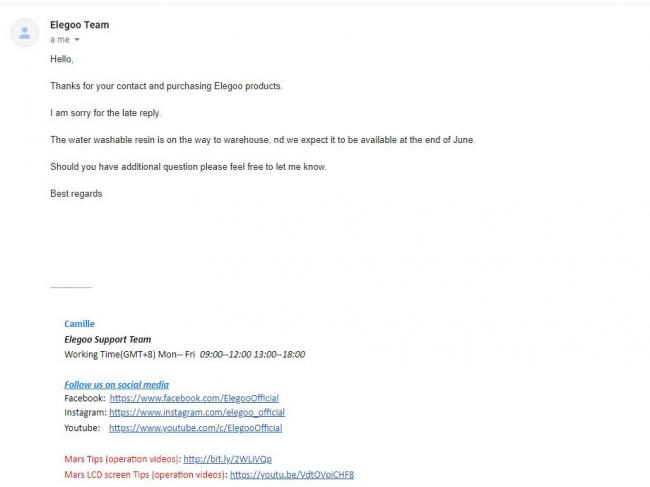 Tomto Inviato 1 Giugno 2020 Inviato 1 Giugno 2020 Ho chiesto ad elegoo quando tornerà la loro resina lavabile su amazon Italia . Allego risposta Cita