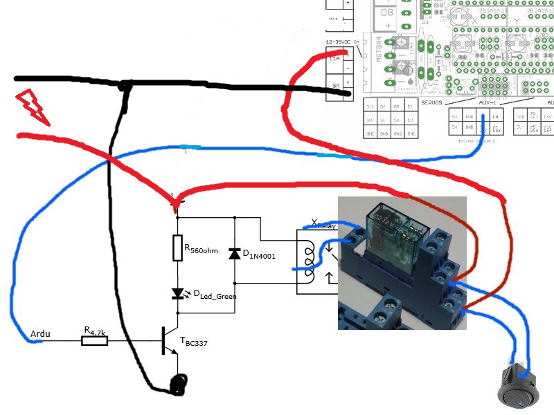 Ospite Inviato 7 Maggio 2015 Inviato 7 Maggio 2015 Mi dispiace per la mia professoressa di Arte delle medie ma questo è il massimo che sono riuscito a fare, La Massa da alimentatore la colleghi direttamente alla ramps, Mentre i 12V devi farli passare attraverso il Relay per comandare acceso/spentoInoltre serve un Bottone (non mantiene lo stato) per baypassare il Relay quando vogliamo accendere la stampante che da sola non ne è in grado.. Cita