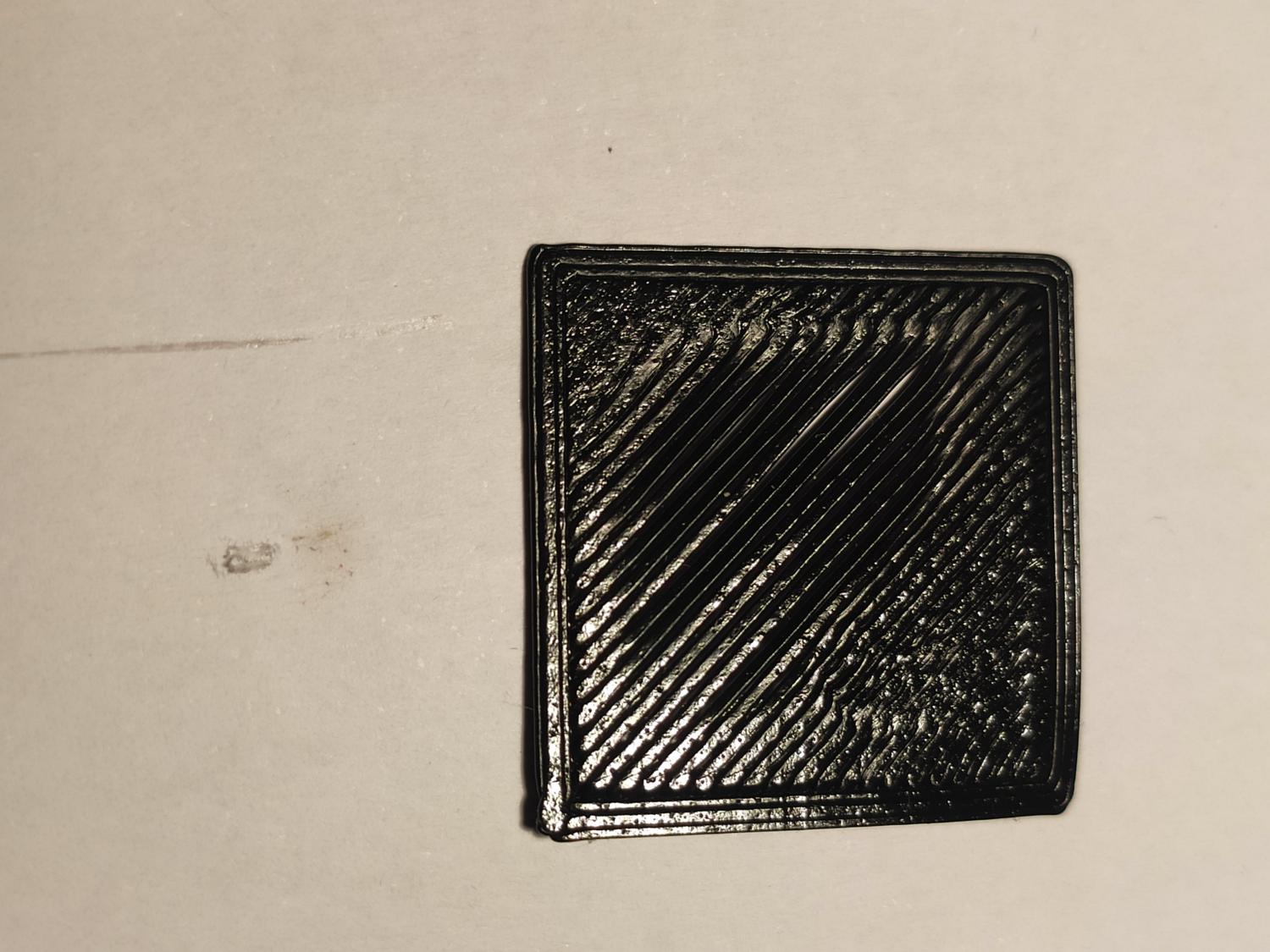 Come vedete dalla foto del quadrato il problema che pensavo fosse di sotto-etrusione non è constante su tutto il pezzo ma si presenta solo nelle linee oblique...
