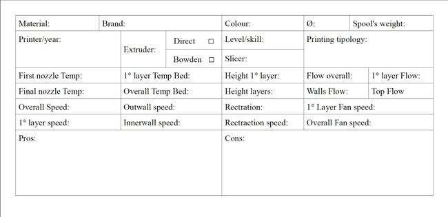 Otto_969 Inviato 22 Febbraio 2021 Autore Inviato 22 Febbraio 2021 @Alessandro Tassinari @Killrob @Whitedavil Proprio per evitare discussioni tipo chi ce l'ha più lungo (il filamento...), io avevo pensato ad un vero e proprio database: senza discussioni sui materiali (per quello c'è già la sezione del Forum dedicata). Di impaginazione web non ne capisco niente, ma avevo pensato ad una struttura ad albero tipo: ABS -> sezione ABS -> scheda filo testato PLA -> sezione PLA -> scheda filo testato Database materiali -> Elenco produttori -> Sunlu -> Materiale -> PLA+ -> sezione PLA+ -> scheda filo testato PETG -> sezione PETG -> scheda filo testato Nylon -> sezione Nylon -> scheda filo testato E così via per tutti i maggiori produttori di filamenti, ovviamente seguendo l'esempio del thread delle "Stampanti al dettaglio", su richiesta utenti la lista può eventualmente ampliarsi. Per evitare discussioni inutili (non c'è dubbio che sia difficile parlare in modo imparziale dei propri acquisti!), sarebbe bello una scheda precompilata già pronta, mancante ovviamente, solo del testo del proprio test filamento... Solo informazioni base, niente chiacchiere perchè il database deve servire a dare un servizio, non a vendere, o peggio a litigare su chi ce l'ha più lungo (sempre il filamento...). Non so se sia possibile, ma io avevo pensato ad una vera e propria "scheda" precompilata dalle voci davvero basilari tipo: Colore filamento e data acquisto, marca stampante (updates?), tipo estrusore, Temps varie, Flow e velocità varie, tipologia prodotto stampato (per me è fondamentale: una cosa è stampare pupazzetti, un'altra è stampare un ingranaggio o meccanismo che deve essere accoppiato, e funzionare, con altri...), Slicer, livello di esperienza nella stampa 3d. Nella parte più in basso della scheda, due riquadri per i problemi riscontrati, ed ovviamente i lati positivi... Nessuna possibilità di ribattere al post, è una scheda, non una discussione. Cita