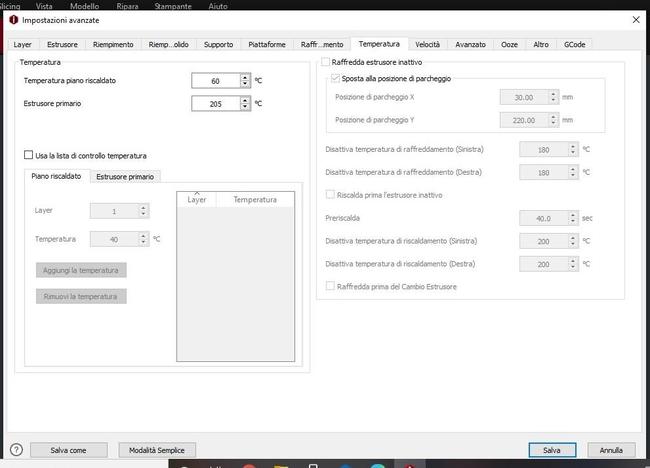 Eddy72 Inviato 15 Aprile 2021 Inviato 15 Aprile 2021 7 ore fa, Fantasma86 ha scritto: Con Ideamaker oltre al problema citato sopra, dopo il primo strato di stampa setta la temperatura del bed a 0, e non posso intervenire neanche manualmente per ripristinare il valore corretto. Metteresti una foto della Tab delle temperature nelle opzioni avanzate del profilo che usi Ciaoo 1 Cita
