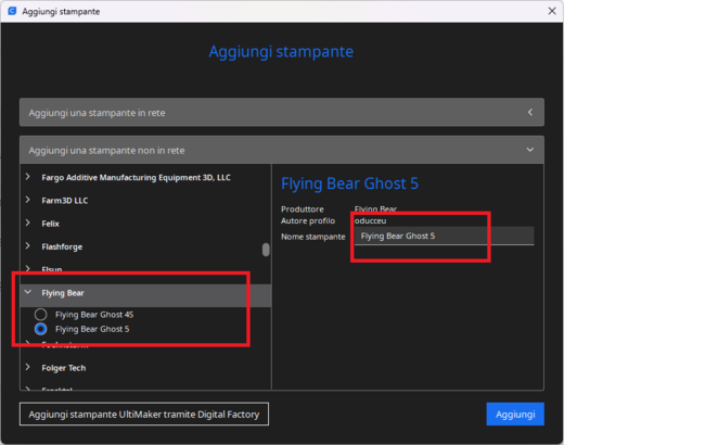 LazZDay Inviato 28 Agosto 2021 Inviato 28 Agosto 2021 Salve a tutti volevo condividere con tutti i possessori di flying bear ghost 5 che è estremamente semplice connettere ed utilizzare la stampante con il suo wifi, basta semplicemente installare cura (dalla 4.6 alla 4.10 senza problemi ) andare nel suo store cercare il plugin Mks wifi installarlo fare il reboot di cura e andare nelle impostazione della stampante selezionare il plugin mks, configuratelo inserendo ip della stampante(si può vedere direttamente dal display della stampante,andando su wifi) dopo aver inserito ip fate connetti e attendere,non succederà nulla,per vedere la stampante correttamente connessa chiudete cura, spengete e riaccendete la stampante appena ha finito il boot aprire cura e cosi facendo cura vi dira che la vostra flying bear ghost 5 è connessa, buona stampa 3d 4 1 Cita
