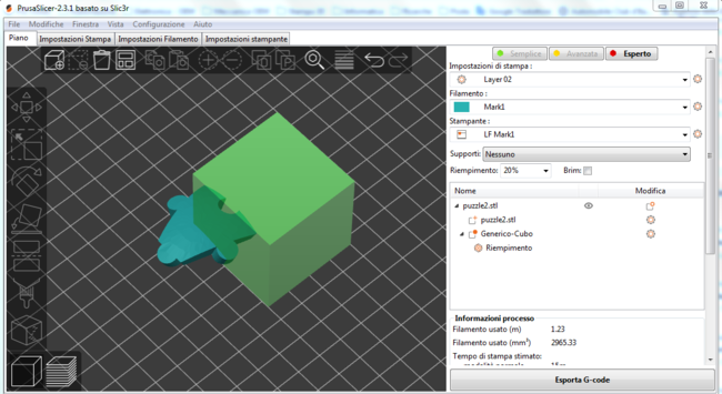 Truck64 Inviato 29 Settembre 2021 Inviato 29 Settembre 2021 1 ora fa, il_cosmo ha scritto: Nella pratica, stavo stampando dei pezzi che si congiungono tra loro a mezzo di “alette” che si incastrano in delle asole del secondo pezzo; essendo le “alette” abbastanza deboli se realizzate con lo stesso parametro di riempimento del restante pezzo, oltre che essere inutile spreco realizzare l’intero pezzo semmai con un riempimento al 100%, pensavo di poter variare solo per le “alette” la percentuale di riempimento. Ma non riesco a capire come... qualora fosse possibile. Con PrusaSlicer puoi semplicemente inserire dei volumi nell'area di stampa (a forma di parallelepiped, cilindro o sfera) e applicare a questi volumi dei parametri differenti. Questo è il risultato cambiando tipo di riempimento: So che una cosa del genere lo fa anche IdeaMaker, per gli altri slicer non ne ho idea 2 Cita