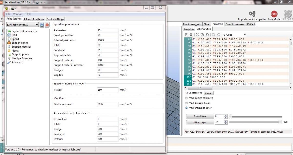 Manuel_megaprusa Inviato 4 Settembre 2015 Autore Inviato 4 Settembre 2015 i3DInviato Oggi, 10:40prova solamente tramite cura senza repetier...ricorda la versione 15.04...e non di più.Ciaosi si, come ho scritto, ho generato il codice da cura, senza repetier... AntoLEDInviato Oggi, 11:18Avrai il firmware della stampante impostato con questi limiti, dovresti ricaricarlo e modificarlo. Inviato dal mio LG-D802 utilizzando Tapatalk...io purtroppo di firmwares e affini non sono molto esperto, comunque non dovrebbe essere scritto tutto nel codice che ho postato all' inizio? Se no in quale file? con il motore slicer, almeno, sembra fedele anche se ancora devo testare come si muove effettivamente la stampante (guardare parametri impostati sulla sinistra e pezzo di gcode sulla destra) Cita
