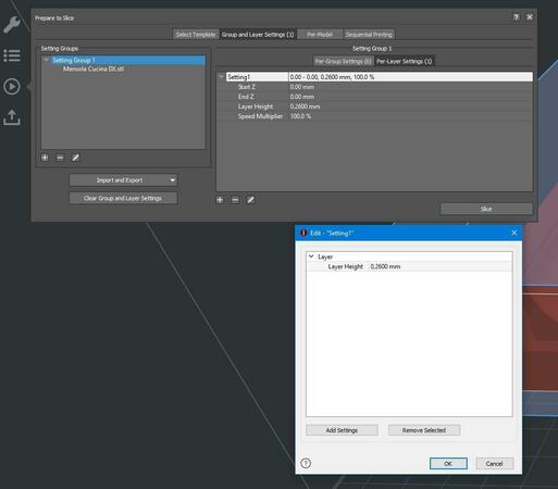 dnasini Inviato 28 Dicembre 2021 Inviato 28 Dicembre 2021 (aggiornato) 1 ora fa, Tuttoslot ha scritto: solo che non so come fare Dalla finestra dello slice, selezione Group and Layer e poi premi il tasto + in basso. Ti si apre il Setting1 con impostazioni di default. Qui puoi impostare il layer di partenza e di arrivo per le modifiche. Impostato quello, sempre in basso, premi il tasto con la matita e ti si apre una finestra dove customizzare le impostazioni per il setting1. Premi Add Setting e scegli il parametro che vuoi cambiare, lo selezioni e lo imposti al valore che vuoi ed il gioco e' fatto 😉 Per il comando di pausa, invece, la cosa e' un po' piu' complessa se nn lo hai gia' configurato come attivo nel firmware. Il comando e' M600 e lo devi impostare nel menu' stampante in ideamaker e poi nel profilo devo impostare il layer a cui fare la pausa Modificato 28 Dicembre 2021 da dnasini 1 Cita