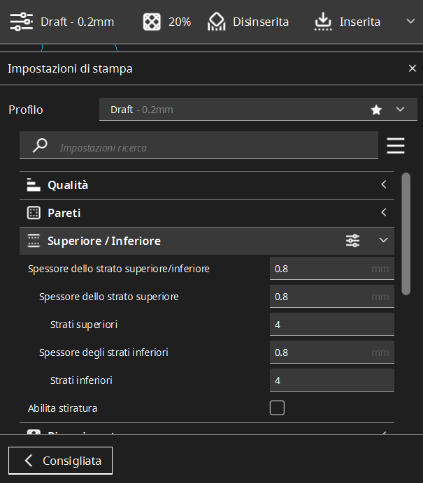ah sai che puo essere?? però prima di portarla a 0.8 com'è adesso, l'avevo a 0.2 di base e non è cambiato nulla.. (l'opzione che ho io a 0.8 non dovrebbe essere "Line Width" ovvero spessore della linea riguardo l'infill?)