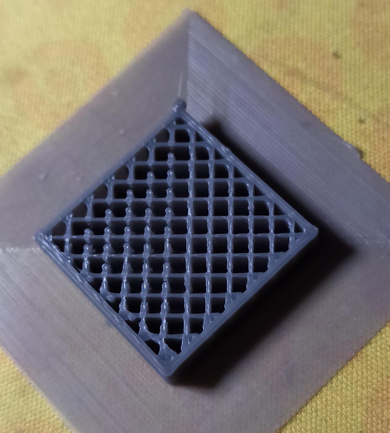Preso dall'entusiasmo che il grigio stampasse bene, ho riprovato coi pezzi.. l'infill continua non venire per niente bene, mentre bordi e skin son venuti dicretamente(ovviamente una leggera pressione e il pezzo si è spaccato.. l'infill era al 30%..)