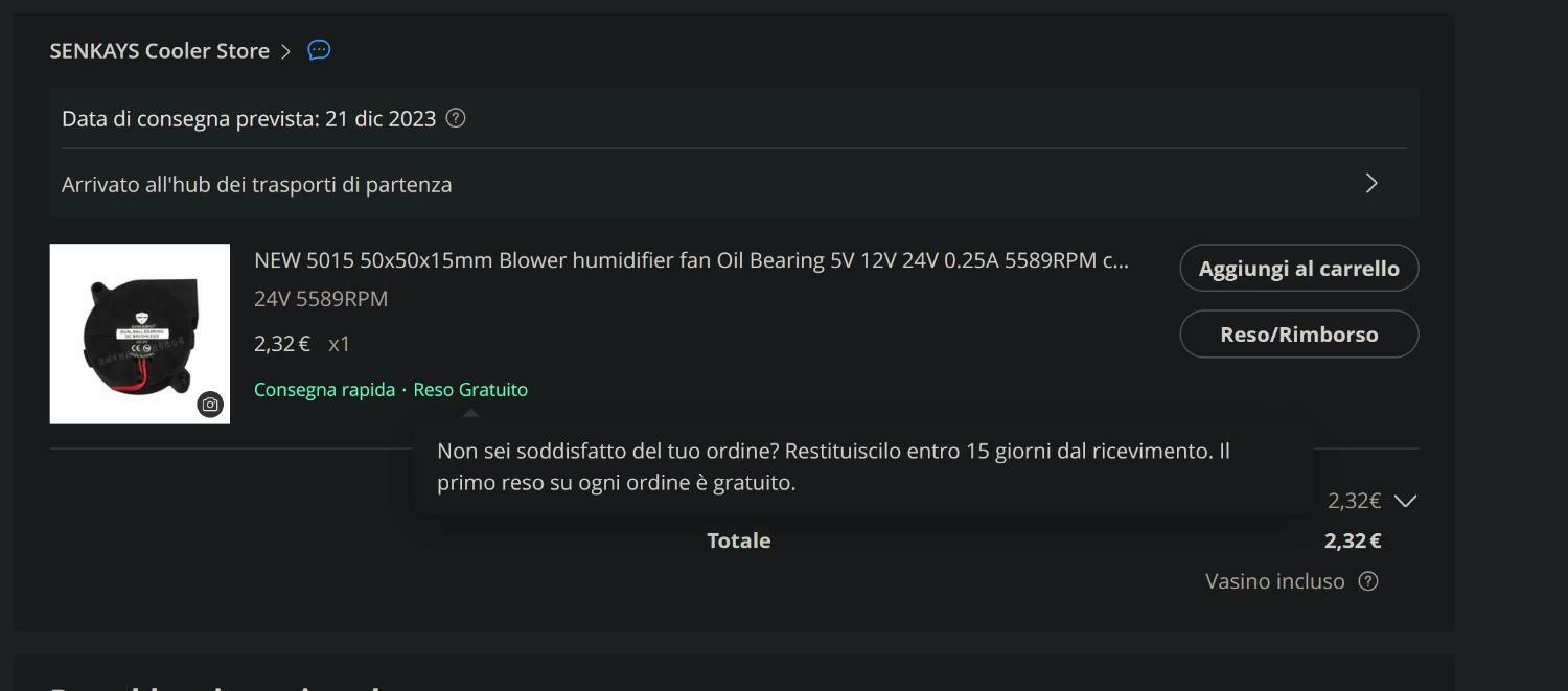eaman Inviato 6 Dicembre 2023 Inviato 6 Dicembre 2023 (aggiornato) 7 minuti fa, dnasini ha scritto: Ehhhh qui la posta consegna direttamente in casella, l'unica possibilita' sarebbe se dovessi pagare lo sdoganamento, allora devo essere presente e forse posso rifiutare la consegna Non so come funzia in Svizzera ma da noi nello stivale la dogana la paghiamo e viene sdoganata in Cina direttamente ora. He ci sta, il trucco di rifiutare il pacco mi sa che funziona solo nelle spedizioni locali. Comunque puoi provare a chiederlo in via amichevole al venditore: gli dici che ti sei accorto che hai sbagliato ad ordinare e se ti propone qualche soluzione... Modificato 6 Dicembre 2023 da eaman 3 Cita