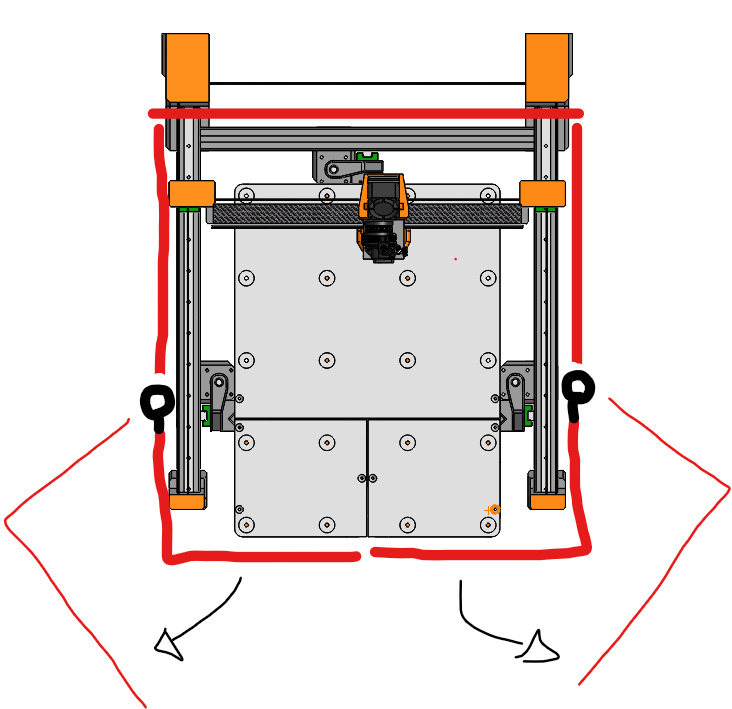 Cubo Inviato 21 Gennaio 2024 Autore Inviato 21 Gennaio 2024 (aggiornato) In realtà ci sarebbe anche l'asse x che cerca di tenere parallele ed equidistanti le due guide di y (che però conta meno di un estruso imbullonato ovviamente, soprattutto sul "parallelo"). Pensavo ad una piastra da 4-5mm fatta come qui sotto (parte verde), che va ad avvitarsi con sue fori su una staffa ad L a muro. La farei tagliare assieme alla staffa che tiene da sotto il letto così da ottimizzare il taglio. Per chiuderla pensavo di fare così (rosso sono i pannelli di plexiglass): Con le porte ad "L" incernierate sui montanti frontali. Modificato 21 Gennaio 2024 da Cubo 1 Cita