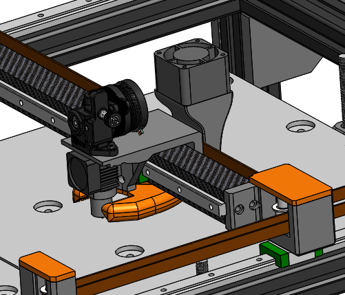 Cubo Inviato 25 Gennaio 2024 Autore Inviato 25 Gennaio 2024 Ho disegnato il primo concept del meccanismo di scambio per il secondo hotend. Praticamente c'è un binario in basso parallelo a Y che tiene una staffa (trasparente nell'immagine) che a sua volta tiene il binario dove viene parcheggiato il secondo hot end. L'idea è di tenere il primo binario spinto verso destra nell'immagine con una molla. Per lo scambio l'hotend principale dovrebbe venire avanti ed accadere questo: Praticamente il binario del secondo hotend andrebbe ad allinearsi all'estruso dell'asse x e rimarrebbe tenuto spinto contro di esso (dalla molla non disegnata). Forse il primo binario (quello della staffa parallelo ad y) mi converrebbe metterlo sotto all'estruso invece che a lato 🤔 Se riesco domani faccio un video del movimento che si capisce meglio. Cita