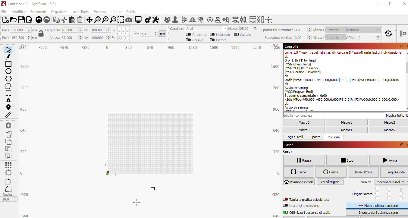Mauro59 Inviato 24 Febbraio 2023 Inviato 24 Febbraio 2023 Salve comunità, da poco ho acquistato il mio primo laser Atomstack x30 pro appena immesso sul mercato , provato a sufficienza per poter esprimere le mie impressioni e posso dire che funziona molto bene confermando i dati del costruttore. Ora ho ampliato il piano lavoro per necessità acquistando una "meccanica" con piano lavoro da 150cm per 100cm. Ahimè ho un problema da principiante che non riesco ancora risolvere. Gli assi, andando al punto di origine la testa laser se potesse oltrepasserebbe il piano di lavoro. Uso Lighburn ultima versione. Spero in un aiuto da voi che siete esperti. allego una foto in modo che possiate vedere dove si trova la testa del laser. Vi ringrazio anticipatamente. Saluti Cita
