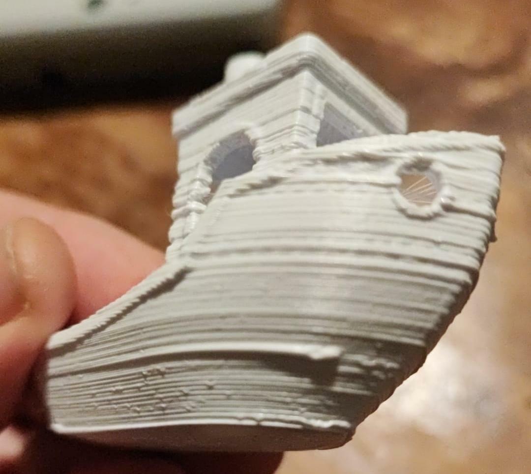 maxl70 Inviato 26 Aprile Inviato 26 Aprile Buonasera! Ero partito, gagliardo e tosto, con le idee chiare per l'acquisto della mia prima stampante (usata) a camera chiusa. Talmente chiare erano le mie idee che alla fine ho messo in macchina una bella Ender 5 plus. A parte i casini con l'aderenza che penso di aver risolto.. ho fatto un livellamento esemplare, guidato da un amico assai più aspetto di me e dopo ho stampato la mia prima benchy di cui allego un paio di foto. La facevo meglio con la penna 3D!! Uso cura con le impostazioni standard. Ho fatto reset via gcode Qualche suggerimento per uscire da quest'incubo? Cita