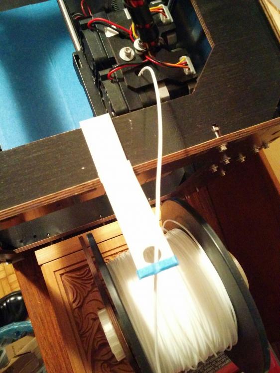 Ecelo Inviato 19 Dicembre 2015 Inviato 19 Dicembre 2015 Scusa il ritardo nella risposta... forse ho capito dove sta il problema. Hai per caso messo la bobina sul supporto agganciandola sul retro della stampante? Se si, ti conviene toglierla e montarla sul supporto volante in legno (quello con le scritte CTC per intenderci) nelle ultime versioni di questa stampante il tubo in ptfe dove scorreva il filamento è stato eliminato in quanto impediva la coreretta alimentazione all'estrusore a causa di vari attriti. Personalmente sulla mia stampante non c'era e non l'ho mai utilizzato preferendo una soluzione fai da te del tipo di quella che vedi in foto. Prova a far andare il filamento lateralmente e vedi se migliora. Se dovesse migliorare drasticamente, stampati un supporto simile al mio e usala così, ma temo che ci sia dell'altro. Potrebbe essere l'ugello sporco o tarature da fare Consiglio: procurati velocemente olio per macchina da cucire. Si tratta di un olio particolarmente puro e trasparente con il quale dovrai periodicamente lubrificare (ne basta una goccia) ogni barra di scorrimento compreso l'elicoidale dell'asse z. Io con quest'olio ho ridotto drasticamente il rumore dei cuscinetti migliorando anche la qualità di stampa. Non farti prendere dalla foga e non esagerare quando ce l'hai altrimenti rischi di sporcare tutto o di farlo cadere sulle cinghie dentate provocando pericolosi detensionamenti o slittramenti. Tienimi aggiornato Ciao Cita