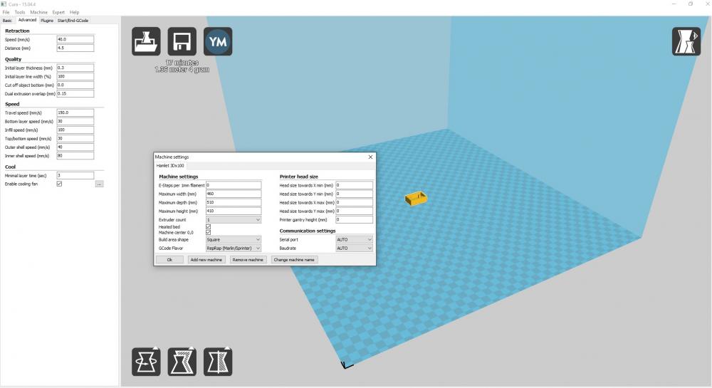 franchinello Inviato 15 Marzo 2016 Autore Inviato 15 Marzo 2016 Grazie Marco ed Alessandro per l'interessamento e le cortesi risposte. Non ho una foto (al momento) ma il problema principale è che la testina inizia a stampare mezza fuori e mezza dentro dal piano in bachelite....e non in centro. In questi giorni ho provato a spostare "a mano" l'oggetto ma diciamo che stampa sempre un pò dove vuole... a volte a dx in alto... altre volte in basso a sx .. e sempre per 3/4 fuori e 1/4 dentro alla base.... Se non Vi dispiace, posso postare qualche screenshot delle mie impostazioni di Cura... in ogni immagine ho cercato di racchiudere alcune informazioni ... ad esempio Cartella Advanced + Machine Setting..ecc... Il pezzo disegnato è solo un esempio ed è un oggetto di cm 2x3x1 Ovviamente non vi chiedo la "pappa pronta" ma solo alcune indicazioni su come risolvere questo problema poichè mi sa che sono proprio fermo !!.... Ancora un caro saluto e un sentito ringraziamento Cita