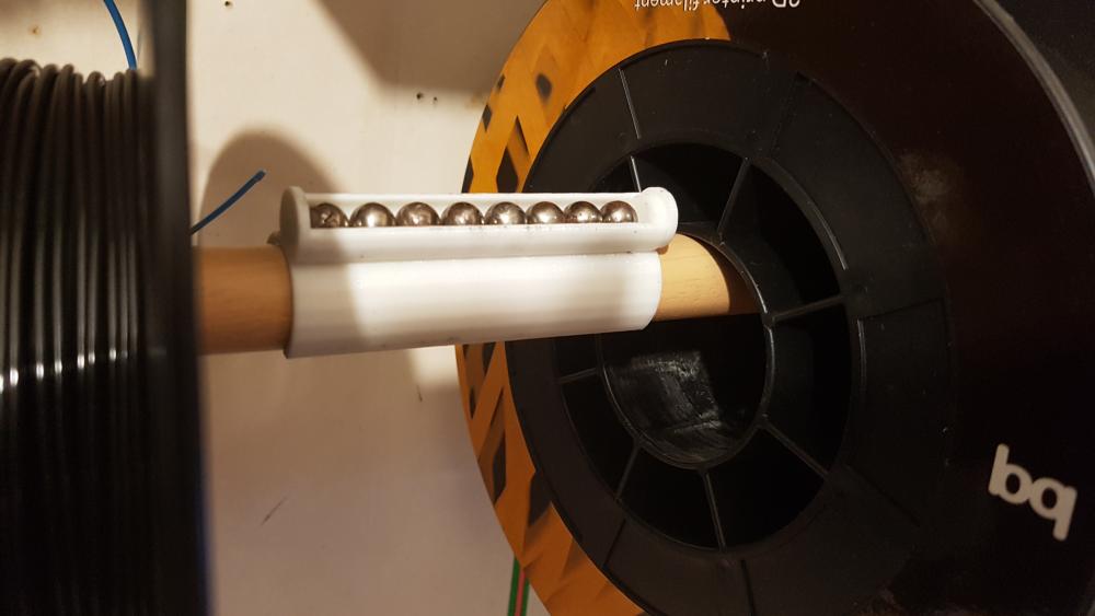 krashone Inviato 30 Giugno 2017 Inviato 30 Giugno 2017 Salve a tutti, avrei la necessità della vostra esperienza per migliorare il sistema di rotazione del porta-filamento, attualmente le mie bobine sono posizionate su di un'asta di legno cilindrica su due staffe. Ma noto un palese sforzo durante lo scorrimento del filamento oltre ad un cigolio dovuto all'attrito con l'asta di legno. Sul web trovo parecchie soluzioni tra le piu svariate ma desidererei migliorare il mio sistema per motivi di spazio e praticità in quanto con l'asta ci tengo tre bobine contemporaneamente. Allego foto del mio sistema da migliorare cosa mi suggerite ? Grazie 1000 Cita