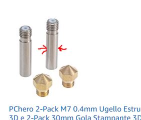 ho acquistato degli ugelli MK10 di ricambio per la mia CTC DIY PRUSA ("PChero 2-Pack M7 0.4mm" su Amazon), solo che il diametro degli ugelli è 7mm, mentre quello che dovrei sostituire è da 6mm (la parte cilindrica liscia, per intenderci). Non riesco proprio a trovare degli ugelli m6: qualcuno sa darmi una dritta ? Oppure mi conviene allargare il foro del supporto dell'ugello per accettare gli m7 ?