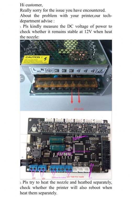 dopo un sacco di prove finalmente faccio "Preheat PLA" e taaaac! esattamente come te, mi si riavvia tutto.. controllo i collegamenti tutto ok.. testo l'alimentatore.. va giù a 6v quando lancio sia PLA che PLA Bed... mannaggia..