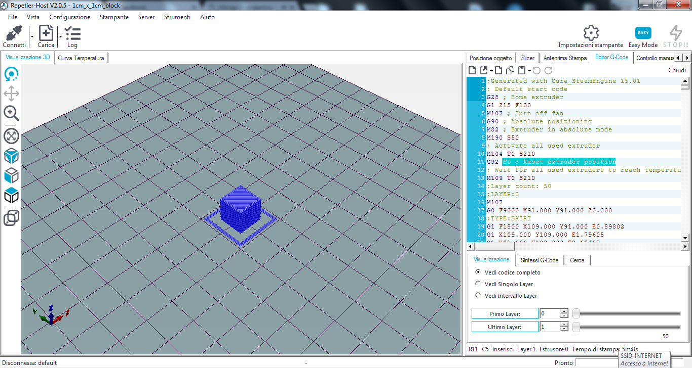 matteo392 Inviato 5 Aprile 2018 Autore Inviato 5 Aprile 2018 in questa stringa vado ad impostare il nuovo lavore degli step/mm giusto? valore che calcolo con una formula trovata in rete che utilizza il valore teorico del filamento estruso, il valore reale e gli step/mm di base posso solamente modicare questo valore e poi passare a cura per gli altri parametri o devo impostare anche il resto da qui? purtroppo la mia stampante non si collega al pc Cita