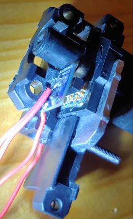 Smonto e sostituisco l'estrusore, la stampante non rileva alcuna temperatura..rismonto il gruppo..ecco che un cavetto del sensore di temperatura si rompe.