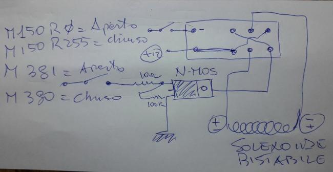 Carlo50 Inviato 1 Settembre 2020 Autore Inviato 1 Settembre 2020 Carlo Montecchi <carlorex50@gmail.com> I tre rele' invertono le tre uscite ai solenoidi, in modo che con tensione inversa si sgancino dalla posizione bistabile, poi vanno diseccitati con M381 per togliere la tensione.(allego lo schema di un solo rele, perche' le tre bobine sono in parallelo , mentre i sol sono ognuno per solenoide) G4 P1000 M150 R255 // Eccita il rele' di inversione tensione M380 // Eccita il solenoide per sollevarlo G4 P100 M381 // Diseccita il solenoide che essendo bistabile rimane sollevato senza alimentazione M150 R0 // Diseccita il rele' di inversione polarita' T0 M380 ; Eccita Solenoide con tensione diretta G4 P100 ; Pausa M381 ; Spegne Solenoide che resta in posizione abbassata essendo bistabile Non sono i comandi sbagliati, ma i tempi di esecuzione (stampa dell'ultimo punto, sollevamento dell'estrusore, posizionamento al nuovo punto, scambio di estrusore ed a bassamento dello stesso) Se invece il programma mi sposta il carrello al nuovo punto del nuovo estrusore e solo dopo me lo alza per poi riabbassarlo, sfrega lungo tutto il tragitto. Carlo Cita