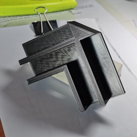 La soluzione Titanic 😊 di Killrob mi piace molto ma anche questa e' parecchio interessante. Entrambe che si adattano al foro della ruzzola. I cuscinetti pero' alla fin fine ci vogliono sempre e il primo negozio che li ha qui' da me e' giusto appena fuori comune e mannaggiallazonarossa non posso andarli a prendere. Uffa. 😷 Son persino andato da un Decathlon per cannibalizzarli da un paio di ruote dei pattini ma....LE HANNO FINITE !! 🤐 Nel frattempo, dopo aver srotolato per bene il filo, ecco la mia (ERA ORA) prima Dima-A-Raggi per lo smusso degli angoli con la fresatrice. Per le mie aspettative, a parte un paio di micro-caccole, e' gia' fenomenale e la fresa andra' che e' un piacere ma partiro' comunque da qui per vedere se riesco ad ottenere una stesura del filamento migliore visto che, come miavete detto in un altro post, pare leggermente magra Mio Dio se non c'eravate voi....💪 -