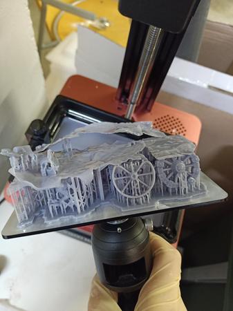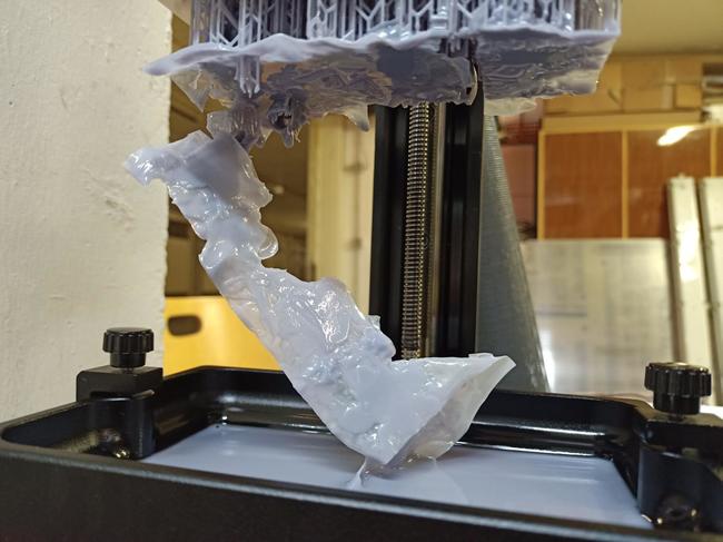 La storia di questa stampa (la riporto nel caso avessi sbagliato qualcosa): ho stampato nel primo pomeriggio un piattino di basi per i modellini con layer 0,5 a 8s e la stampa è andata perfettamente. Non avendo avuto problemi non ho rimosso la resina residua nella vaschetta che comunque se ne sta chiusa nella sua copertura al riparo da polvere in un luogo buio (la tengo in garage... l'ho comunque già fatto e non ho avuto problemi a memoria). Ho pulito e asciugato il piatto di stampa. La sera, un'oretta e mezza dopo aver agitato il barattolo di resina, ho versato una piccola aggiunta nella vaschetta e fatto partire la stampa, curandomi che non ci fossero bolle d'aria evidenti sulla superficie.
