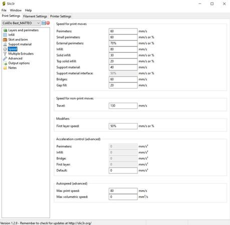 Ecco i risultati, dopo aver calibrato tutti gli step/mm, il flusso. Ma quello che ha influito maggiormente è stato l'abbassamento l'accelerazione Jerk a 10mm/s^2 e di alcune velocità oltre che l'impostazione corretta (o almeno credo 🙂 ) dell' "Z Offset". Questi sono i risultati ed i parametri di velocità utilizzati. Devo ancora capire come rendere più uniforme l'ultimo layer, ma un passo alla volta... Ancora grazie per i vostri consigli e le vostre guide!