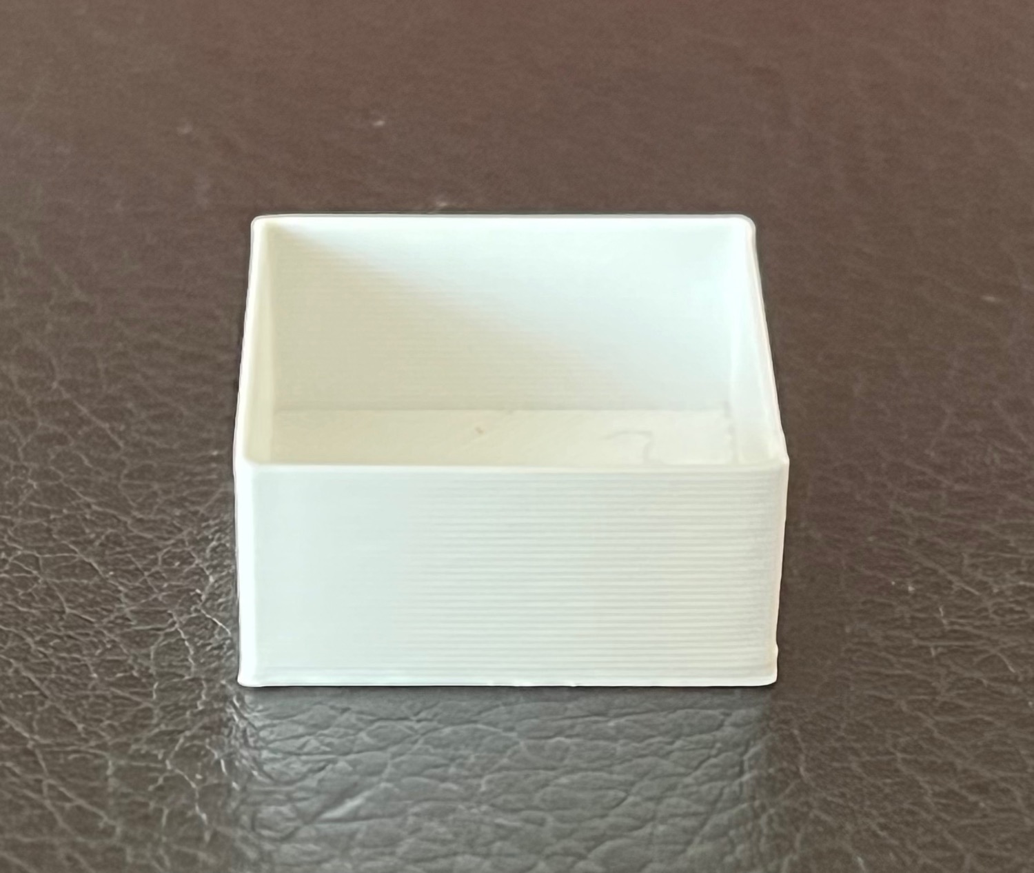 3. Sì il cubetto era sottosopra, nella fretta l’ho capovolto. Ho stampato un altro cubetto con altro pla: Questo invece è il cubetto con parete da 0.5 (precisa da calibro, ottenuta con flow=1): Posto una parte in PETG che ho stampato per l’enclosure che sto costruendo: