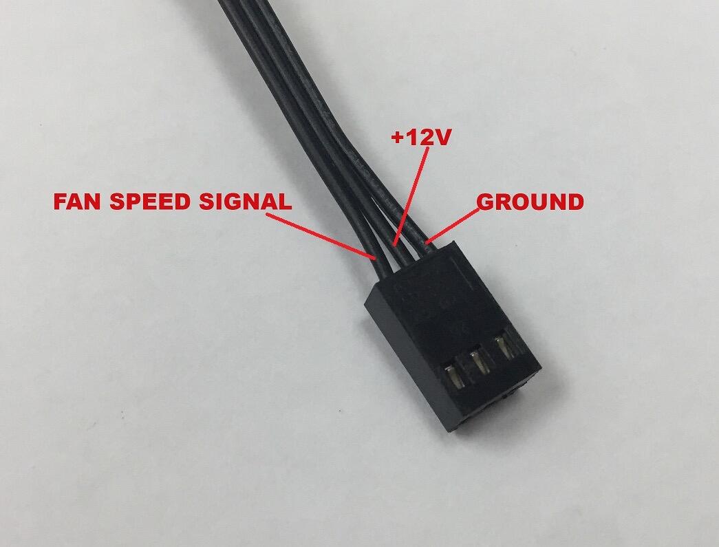 7. Trovato questa foto in giro sul web corrispondente al modello della mia nuova ventola. Quindi mi basterà collegare il cavo + al cavo nero centrale (+12V) e il - al cavo Ground?