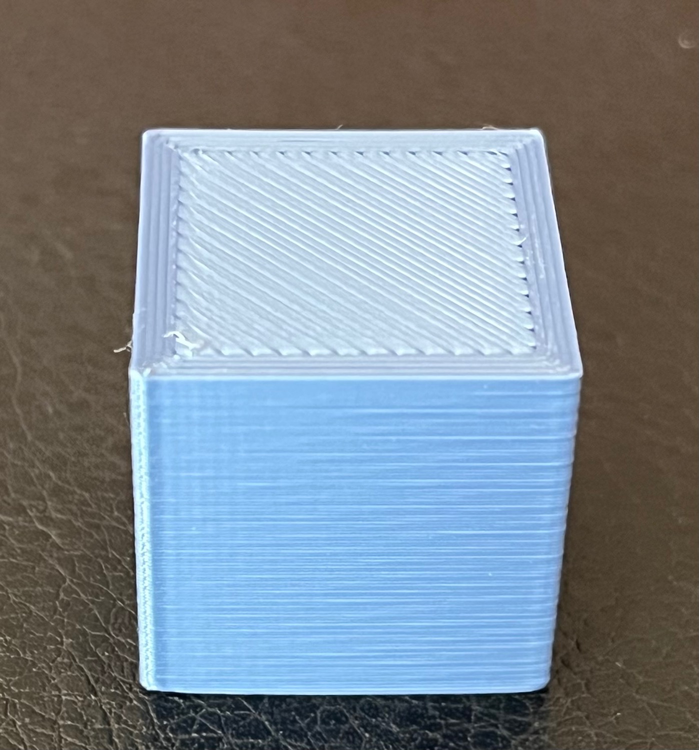 5. Ho seguito i consigli. Il flow l'ho dovuto alzare a 1 per ottenere una parete da 0.5 con linea 0.5 (quindi i test precedenti dubito fossero sovraestrusi). La nuova temp è 200°. Questo è il risultato del cubo pieno 20x20x20 con 4 perimetri e 4 top/bottom: Comincio a pensare siano le due assi Z... La stampante ha 5 anni e 289 giorni di stampa, forse sono da cambiare, che dite?