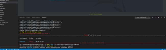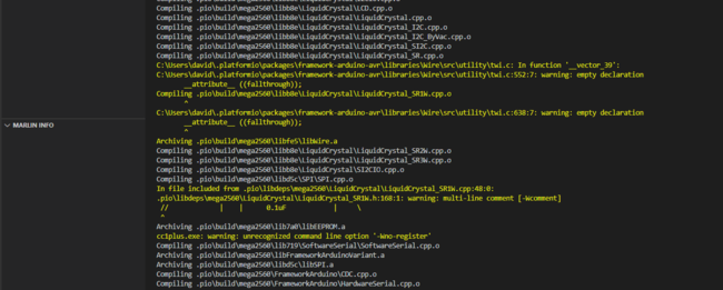 Non so come intervenire nello specifico. Ad ogni modo ho provato a compilare un marlin di base e non ho avuto problemi, quindi almeno so di non avere problemi con VScode.
