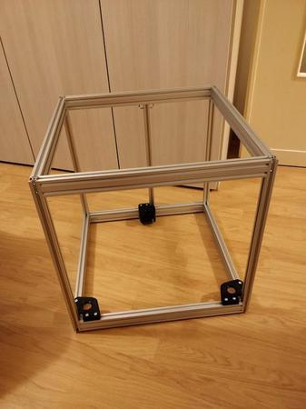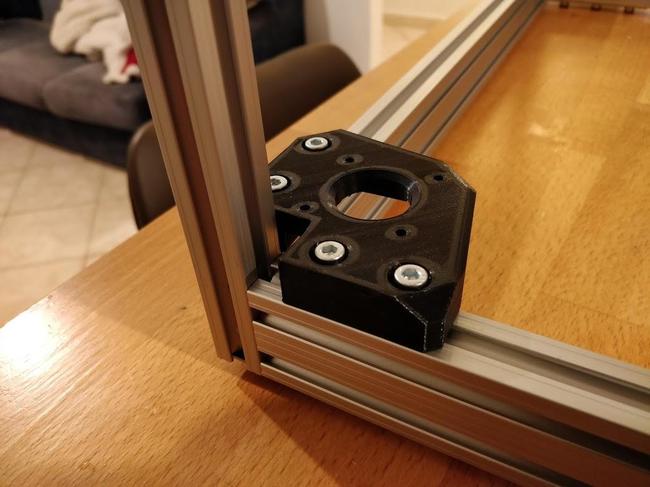 alla fine ho montato tutta la base e i 4 verticali, già così è parecchio rigido senza aver ancora la parte superiore di 2040, ed è anche tutto in squadra e a piombo.. misurerò alla fine ma credo andrà tutto bene. alla fine ho deciso di esagerare, ho filettato il centro delle 2040 della base (le righe orizzontali che si vedono) e bloccato il 2020 verticale con 4 M5x60 (al montaggio finale userò anche del ferma viti non permanente) usando la testa delle M5 come fossero dei dadi battenti al contrario. oltre a queste nella parte inferiore ho messo una staffa ad L in acciaio con 6 t-nut M5 mentre in corrispondenza della base del 2020 sempre filettato una M5. già questo da a quell'angolo robustezza, in più sopra si aggancerà il supporto per gli stepper Z anche loro con 4 M5 e dadi battenti. tra 2040 e staffa ad L metterò a sandwitch una lastra da 500x500 (al momento non c'è) che farà da base del contenitore per tutta l'elettronica. questo fatto per ognuno dei 4 angoli inferiori, sarà uguale per gli angoli superiori anche se non so ancora cosa mettere al posto della staffa ad L che non il top in quanto pulizia, magari me la faccio tagliare in alluminio, vediamo. eh si bisogna esser delicati anche se filettare l'alluminio è più facile che l'acciaio con cui ho un po' più d'esperienza ahaha comunque è stato abbastanza facile tutto fattibilissimo. -