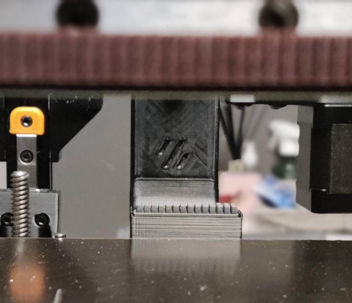 Un'altro passettino verso il setup finale: - Aggiunta macro e hw relativo (v1) per la pulizia nozzle e l'homing di Z in serenita' - Aggiunta telecamera con funzionalita' IR Pulizia nozzle Ho aggiunto la testa di una spazzola per la pulizia manuale ad un supporto che ho trovato gia' fatto e riadattato per le mie esigenze. Siamo in versione 1.0 in quanto ho gia' intenzione di sostituire la spazzola in metallo con dei piu' stilosi pad in silicone (gia' ordinati), piu' discreti e che nn rischiano di rovinare il nozzle alla lunga Ad inizio stampa, lancio una macro gia' presente nel printer.cfg della Leviathan a cui ho aggiunto un doppio passaggio di pulizia per poi fare l'home di Z, livellamento piatto e nuovo home completo [gcode_macro G32] gcode: SAVE_GCODE_STATE NAME=STATE_G32 G90 M109 S180 #Set and wait Hotend temp to 180C G28 X Y #Just home X and Y Axis #Nozzle cleaning process G0 X170 G0 X220 G28 Z Z_TILT_ADJUST G28 ## Uncomment for 250mm build G0 X125 Y125 Z30 F3600 RESTORE_GCODE_STATE NAME=STATE_G32 Telecamera Nelle altre due stampanti, avevo tamto spazio da scialare e quindi l'installazione della telecamere era praticamente una bazzeccola.... In questo modello Voron, ho scoperto che tutto e' compattato, figata x l'ottimizzazione degli spazi, ma per l'aggiunta di componenti custom un vero challenge. alla fine, ispirato da una soluzione trovata su Printable, ho ridisegnato il supporto pubblicato per adattarlo alle mie esigenze e installara, anche in modo poco Stylish, la mia bella telecamera IR La resa non e' malvagia, anche se l'inquadratura e' troppo vicina come detto, lo spazio e' risicato dentro il telaio e metterla esterna x il momento nn mi piace. Dovendola usare solo x monitoring e nn per timelapse me la faccio andare bene 🙂