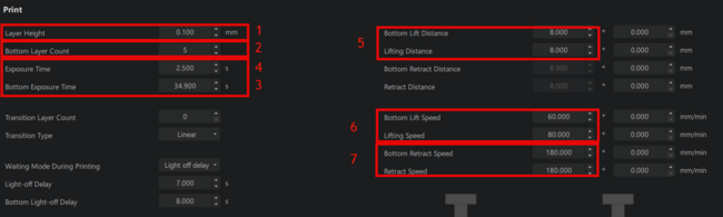 Ciao, Ho una Elegoo Mars Pro 2 e sto cominciando a stampare alla creatura delle figures x un gioco di ruolo. La classica resina lavabile Elegoo che uso di solito si e' rivelata troppo delicata per questi oggetti in cui alcuni dettagli si rompono con una facilita' imbarazzante. Ho quindi acquistato una resina SUNLU ABS anch'essa lavabile in acqua ed ora mi sto cimentando nella configuraziona dei parametri in Chitubox. Chiedo una mano perche' e' un po' di tempo che nn ci guardo e non sono del tutto sicuro di aver interpretato correttamente la documentazione della resina per cofigurare lo slicer. Qui di seguito l'estratto dalla doc di SUNLU In para metro in rosso, non saprei a quale parametro associarlo nella config di Chitubox qui di seguito, mentre gli altri li ho assegnati nel seguente modo Inoltre, le caselle 5 6 e 7, per la stessa voce hanno due parametri differenti che non mi e' chiaro se devono essere specializzati (avere valori differenti) oppure se va bene siano uguali. L'altro aiuto sarebbe quello di capire se i parametri impostati hanno senso o vadano modificati Grazie -