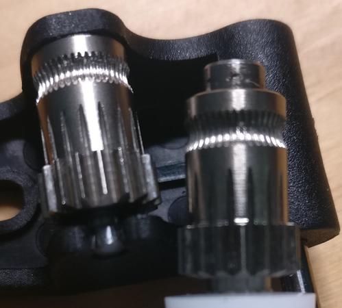 Ho appena terminato di pulire il dual drive.... In effetti, l'interno ricordava molto la sabbionaia in cui giocavo da piccolo all'asilo. Comunque, smontato tutto il dual drive, eliminata la polvere di filamento dall'interno e dalle ruote godronate e rimontato il tutto. Le due ruote sembrano in perfetto stato e anche passandoci il dito sopra si sentono nettamente i denti che accompagnano il filo In condizioni non ottimali la testa del PTFE del Bowden. Appena smontato l'ho ritrovato in queste condizioni Inserendolo nuovamente all'uscita del dual drive e applicando la clip per tenerlo fermo, noto che ha gioco, nel senso che se lo muovo avanti ed indietro, il tubo mi segue, cosa che, quando ho sostituito il gruppo estrusore, non faceva. Con la clip inserita il movimento era minimo... Mi tocca sostituirlo o posso limitarmi a tagliarlo? la mia paura nel tagliarlo e' poi di essere al pelo quando arrivo in fondo all'asse X.. -
