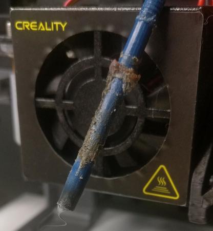 Bhe, devo dire che ho fatto bene a prendermela con calma e non allarmarmi poi piu' di tanto prima di smontare l'hotend... Zero sbatti, ne ho di scorta comprato per tempo, cambio PTFE e hotend e passa la paura...... questo vedo di ripulirlo con calma e poi ricomincio... -