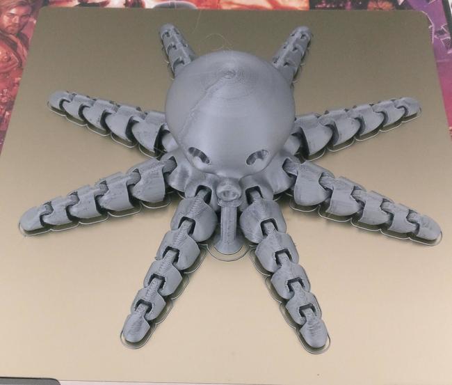 Allora, per quanto riguarda ill primo layer dovrei essere a posto con i parametri gia' impostati First layer height 0.3mm First layer flowrate 120% First layer Extrusion width 120% Hotend 215C primi 2 layer e dal terzo in poi 205C ventola filamento spenta per layer 1, al 30% per layer 2, al 60% dal layer 3 in poi Imposto velocita' al 20mm/s per tutto fino alla testa del polipo e abbasso il travel XY al 80mm/s vediamo con queste impostazioni -