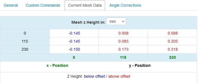 Ciao a tutti, sapevo di non avere il piatto perfettamente in piano, ma dopo aver installato il plugin di octoprint Bed Visualizer e visto il risultato, qualche domanda me la sono posta. Ora, la mia stampante non ha molle per poter regolare gli angoli del piatto, quindi volevo capire se posso fare qualche cosa a riguardo o se "devo" fare qualche cosa sulla base dei risultati ottenuti. Qui di seguito i risultati del probe fatto dal plugin Come si puo' notare, tra il punto 0:0 e 230:230 ballano circa 0.46mm, e non avendo troppi parametri di riferimento mi chiedo, e' una tollerazza accettabile? Io difficilmente devo stampare oggetti grandi che occuperanno l'intero piatto, ad ogni modo, se una soluzione c'e', vorrei metterla in campo. Grazie