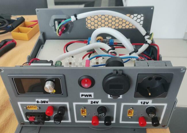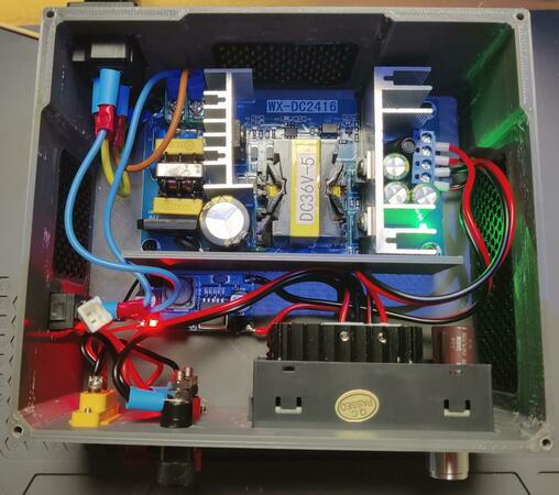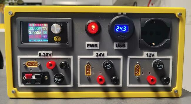Piccolo aggiornamento. L'alimentatore da banco della foto iniziale l'ho iniziato ma nn ancora ultimato. Nel frattempo ho realizzato il suo fratello piu' piccolo Alimentatore da 36V 5A, Stepdown con regolazione di tensione e corrente, ventola on top e 3 diverse connessioni di output. Domani, se trovo il tempo, comincio ad assemblare il fratello maggiore 😄