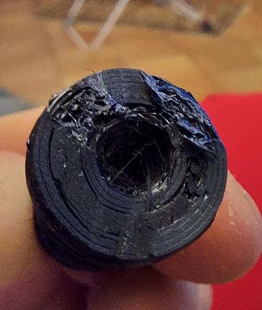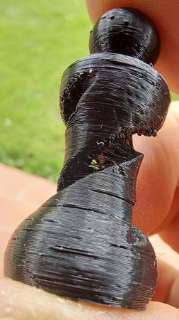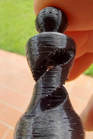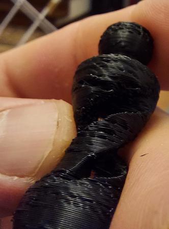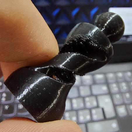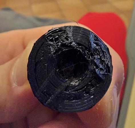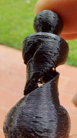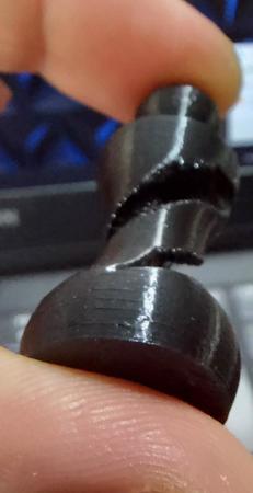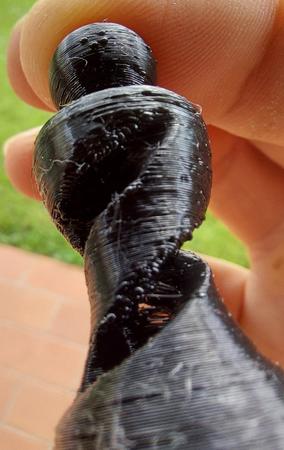 Allora ti posto un po di foto, l oggetto lo ho spezzato apposta perche andavo meglio a fotografarlo, ametto che questo lo ho fatto con un coasting 3.5mm sicuramente troppo, pero i problemi li avevo lo stesso anche con il coasting a 0.50. Ti ho messo anche la foto dell ingranaggio, io ho guardato e girando ho visto un puntino nero su tutto l ignranaggio ma no macchie e l estrusore si come vedi è un estrusore normale, non penso sia quello il problema, pero insomma se hai qualche consiglio, dopo due mesi di prove sincermante sta stronzy mi sta stancando...^^