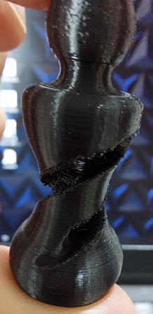 Allora ora la ho fatta ripartire con le impostazioni che mi hai consigliato, unica cosa che ho cambiato ho aumentato a 200c e il flow rate all 83% per avere uno spessore parete 0.40-0.41 con il wall test, ho provato a postare il file stl ma supera il limite kb, il link è questo https://www.thingiverse.com/thing:3547967,