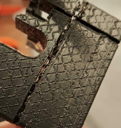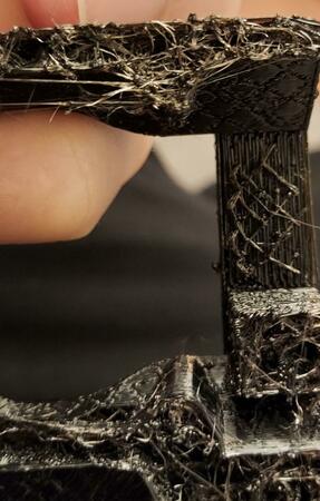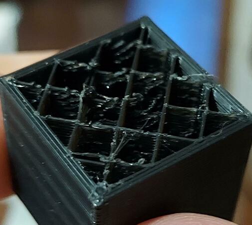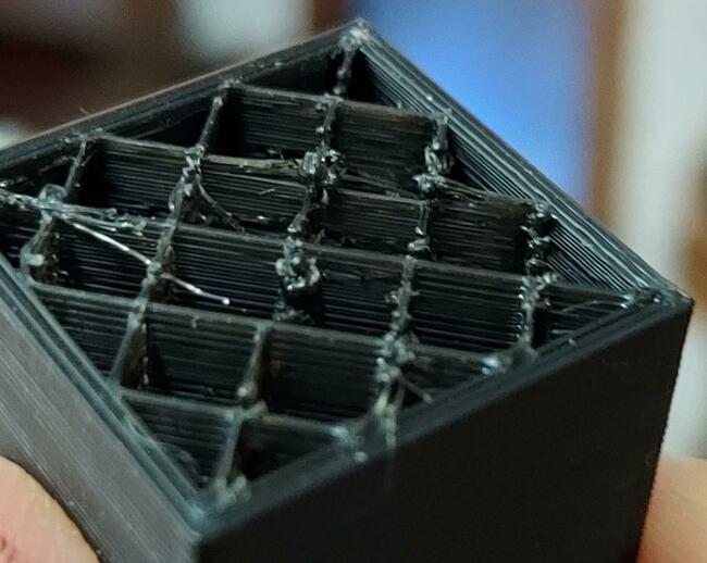 Allora visto che non ho grosse stampe da fare mi sto cimentando su provare nuovi materiali, ora mi trovo con il petg fatto kl temp test risultato 225c, risultava un buona scelta regolato il wall test tutto preciso e parto stampare risultato una M..... il riempimento impostato al 30% è un groviglio, la stampa ha una trama esterna che non dovrebbe avere eppure il pezzo ha 3 pareti, ed ad un certo punto deve essersi bloccata e ripartito...?? Idee‽? è la maledizione della Tronxy