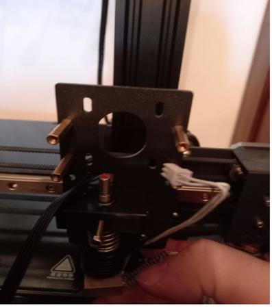 purtroppo è l'unica che ho...ha ancora il filamento dentro (in rosso)...il cavo bianco serve per dare la temperatura dalla scheda al termistore (quindi quando dovevo svitare o avvitare lo collegavo alla scheda...davo il comando sul display della macchina...e portavo il blocchetto riscaldante a temperatura..)...il blocco di cui tu mi ha chiesto la foto, si inserisce da sotto...nella parte superiore (che fa parte del blocco) c'è una ghiera su cui si avvita un bullone che una volta tirato su il blocco permette che tutto il sistema stia fisso senza che lo debba tenere...il bullone serve anche per regolare l'altezza del blocco e di conseguenza abbassa o alza l'ugello in questo modo viene fatto il livellamento..il piatto si livella con il primo estrusore (non è autolivellante purtroppo...), mentre, il secondo (cioè questo della foto) si regola l'altezza alzando o abbassando il bullone)..nella foto che vedi avevo anche tolto la ruota godronata attaccata al motore e la ruota che è accoppiata a questa entrambe fungono da spingifilo ... -