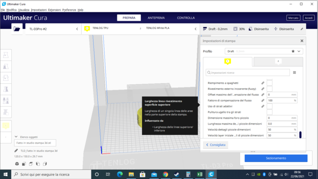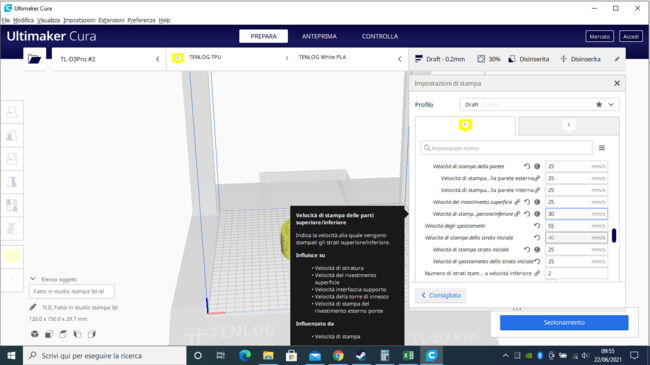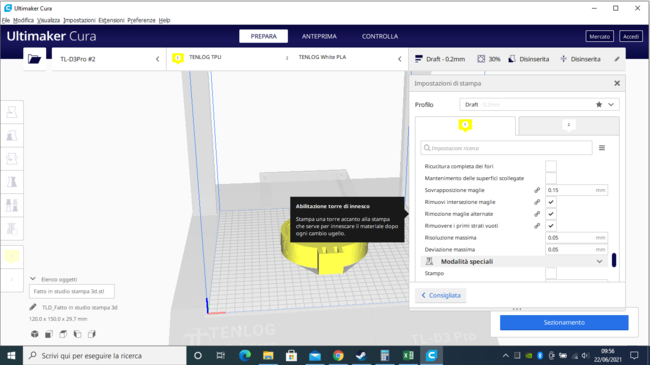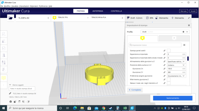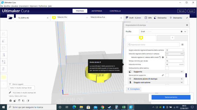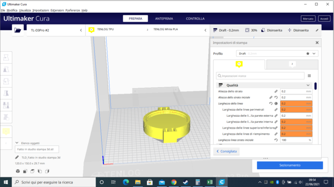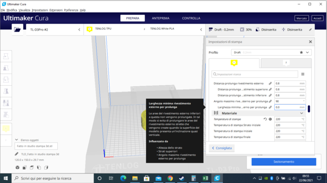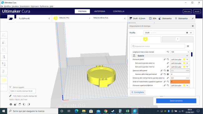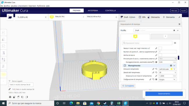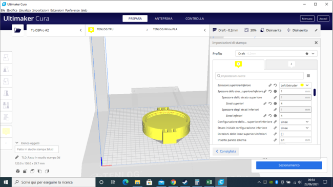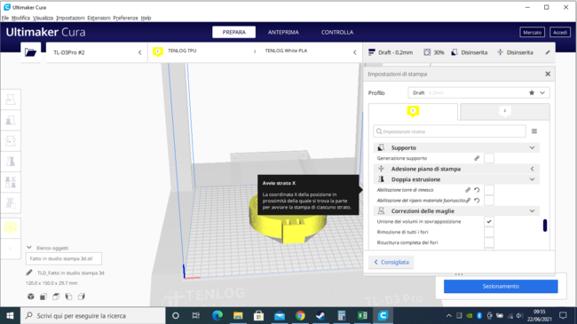 Apposto...grazie Eddy...non sapevo come si controllasse il diametro impostato degli estrusori...è 0,4, quindi corretto. Grazie ancora. -